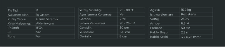 | Ağırlık | Yok |